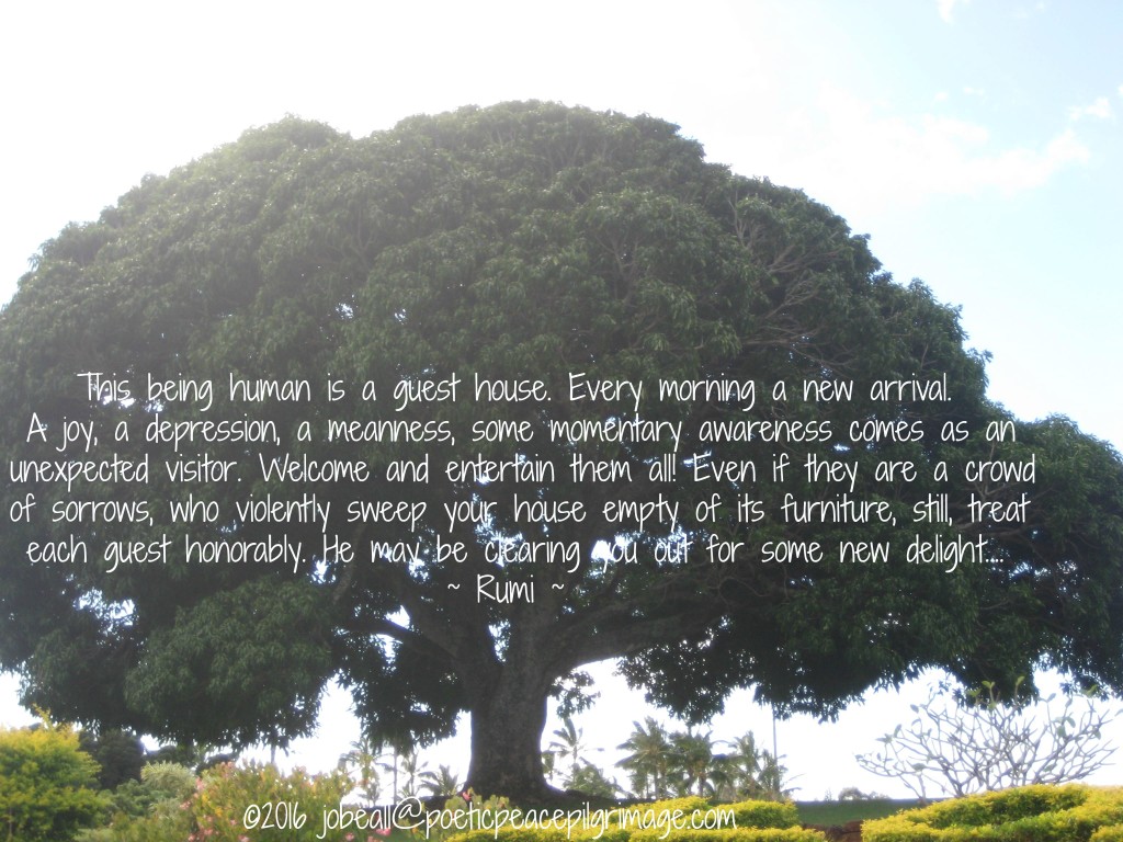 and so when joy comes to visit, we welcome joy warmly knowing joy will be moving on with the caravan, this beautiful guest will pass onward… when the next guest knocks at the door, can we welcome sadness as graciously, as an old companion who has visited many times re-membering that sadness like joy does not stay and does pass on as well…